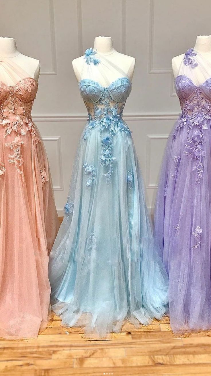 Floral Prom Dress 2024 One shoulder Tulle Zipper Up – AnnaCustomDress